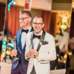 Favorite Details We were given unique journals as an engagement gift from a friend with the purpose of writing notes/thoughts to each other during our first year of marriage. Our first entry was the vows we wrote to each other. We asked the band to learn a song that was special to us—a song a little outside of their comfort zone, “False Alarm” by Matoma and Becky Hill. They did a wonderful job and we were thrilled to share our first dance as husbands to it. We LOVED our suits. We really sweated the details and considered the unique parts of our personalities while ensuring that the suits complimented each other.