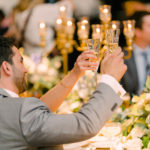 The wedding was classic Emily and Bryan—elegant, romantic, and timeless, with everything from a choreographed first dance to confetti cannons. The wedding day can be overwhelming, Bryan concedes. “There’s a lot of people demanding time and photos,” he says. “But remember it’s a day for both of you and it’s great to share the same memories. The whole reception, I was either dancing, laughing, or holding Emily’s hand. Being together was the best part of our reception.”