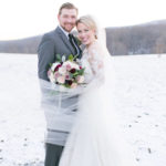 Favorite Details: Unexpected snowfall, farm tables, vintage chairs, vintage china, memory table with our loved ones who had passed away, handpainted signage, and an appearance by our dog, Chip.