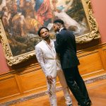 They brought that same creative enthusiasm to their wedding inspiration—a Met Gala-themed celebration at the Baltimore Museum of Art. The couple’s website encouraged maximalism: Being overdressed is a good thing, it read, and encouraged by the grooms. No lights will be dimmed. “It is important for us to live our lives as loud and unapologetic as possible and for us to always encourage that in the spaces we occupy,” says Stephen, a program manager.