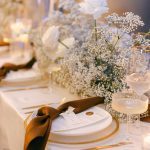 The wedding day was full of other personalized moments, including a circular stage for the ceremony, embroidered napkins, and signature cocktails. Says Stephen, “Everything represented who we were and there was no detail we didn’t tweak.”