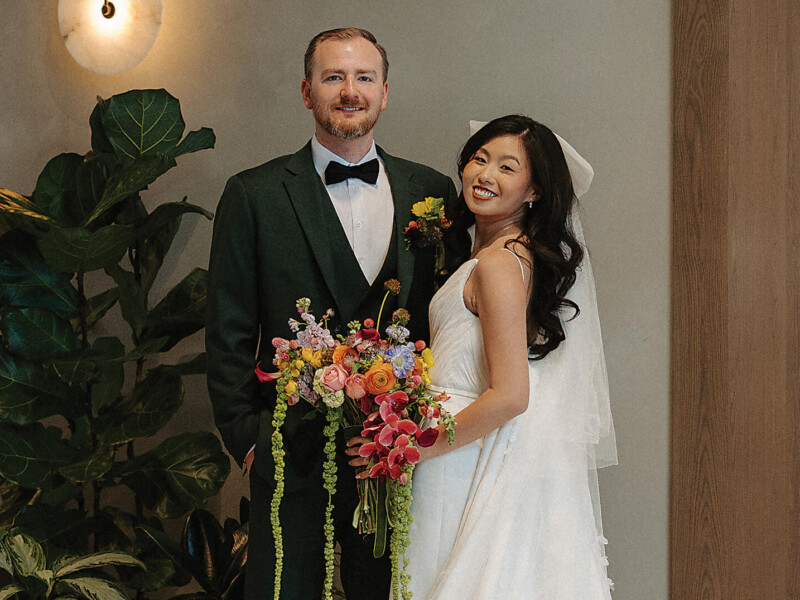 One night, a group of friends was hitting the town, but Pete Lee wasn’t feeling it. A friend coaxed him out by noting that a girl named Suzy Cho would be there. “You’ll really like her,” this friend promised. “And I did,” says Pete, who was smitten from the start. After dinner, as they all headed out for drinks, Pete jumped into Suzy’s car so he could spend some one-on-one time with the dark-haired beauty. That became the norm. “My friends would tell me, ‘Pete will only come out if you’ll be out,’” laughs Suzy. A friendship bloomed, and then, a few years later while on a trip to New York, Pete did the “old-school will you be my girlfriend,” says Suzy. It was lovely and unexpected and to the point. “It was nice to not have the ‘what are we?’ conversation,” says Suzy. Pete had made it clear that he liked Suzy—a lot. They officially started dating in January of 2012. By October of 2015, they were in California visiting Suzy’s best friend. While there, Pete knew he wanted to propose, but he wasn’t sure where. Research led him to the famous Griffith Observatory, which sits on the south-facing slope of Mount Hollywood with views of downtown Los Angeles, Hollywood, and the Pacific Ocean. (Think La La Land romantic.) “I had this whole speech planned out,” says Pete. He had rehearsed it in the mirror over and over. He managed to get her in a nice quiet spot. But when he turned to Suzy, nothing came out. “That’s how it always happens,” says Pete. “I was so nervous.” Suzy, oblivious to the whole thing, was trying to take a picture with Pete. “I was trying to take a selfie with him. And he kept saying something to me,” remembers Suzy. As it dawned on her what was happening, she turned around to see where her friends had gone. “They were in the bushes filming,” she says.