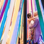 “We wanted a party everyone would enjoy, and we wanted our wedding to be a celebration of our love for Baltimore, our family, and the neighbors that have become our friends and family. In that we were successful—everyone was having a good time. When the ribbons were released on our fully operational, 11-foot-tall Baltimore streetlamp chuppah, suddenly it was just us. Completely hidden in a ribbon cocoon, we could share a kiss that was just ours. I didn’t want to leave.”