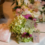 What was Unique and special about your wedding Our wedding was a combination of various family traditions. They were married at St. Leo the Great Church where Jessica’s great-great grandparents were married in 1888. Once they were pronounced husband and wife, they jumped the broom, an African American wedding tradition. Jessica and Jason wanted to create a vintage elegance themed wedding that combined Italian traditions with their love of Baltimore. They had an engagement photo session in Little Italy and hosted their rehearsal dinner at Dalesio’s of Little Italy. Wedding guests received welcome bags with the best of Baltimore treats—Berger cookies, Utz potato chips and Goetz’ s candy—along with popular Italian snacks such as cans of Pellegrino Italian sodas and Bacci chocolates. Italian themed wedding favors included mini bottles of Prosecco for a toast to “Love, Laughter, and Happily Ever After” and a bomboniere. A bomboniere, Italian confetti, is five sugar-coated almonds tucked in fine lace bags representing five wishes for the bride and groom: health, wealth, happiness, fertility, and longevity. During the reception, the band played the Tarantella and the bride’s godmother held the apron while family and friends danced with the bride.