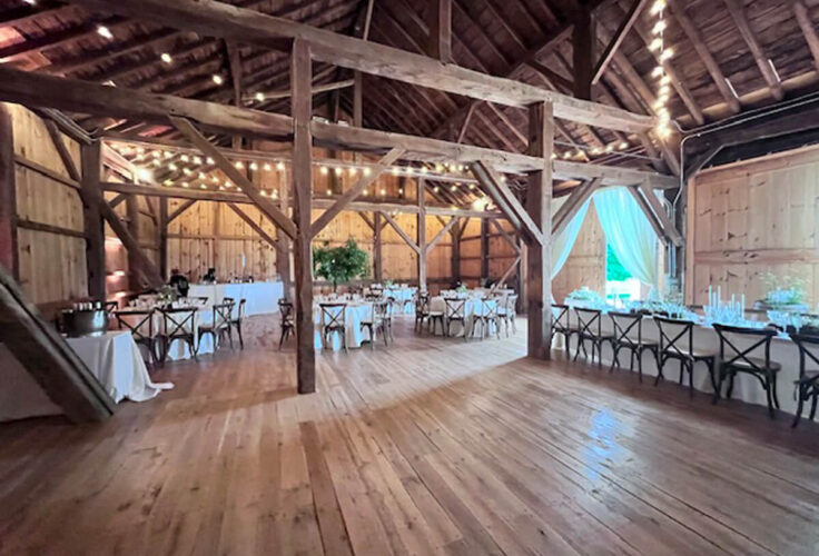 The estate features versatile indoor and outdoor settings, including a renovated 4,000-square-foot barn with vaulted ceilings that accommodates over 200 guests and iconic outdoor backdrops ranging from a 200-year-old Copper Beech Tree to a private pond with panoramic vistas. Designed for complete and cohesive multi-day experiences, Harford Hill allows couples to host everything from welcome receptions to farewell brunches across its sprawling, enchanted grounds.